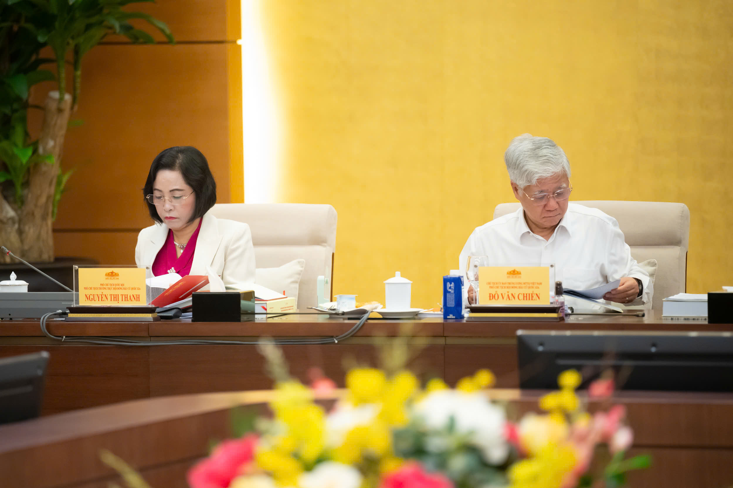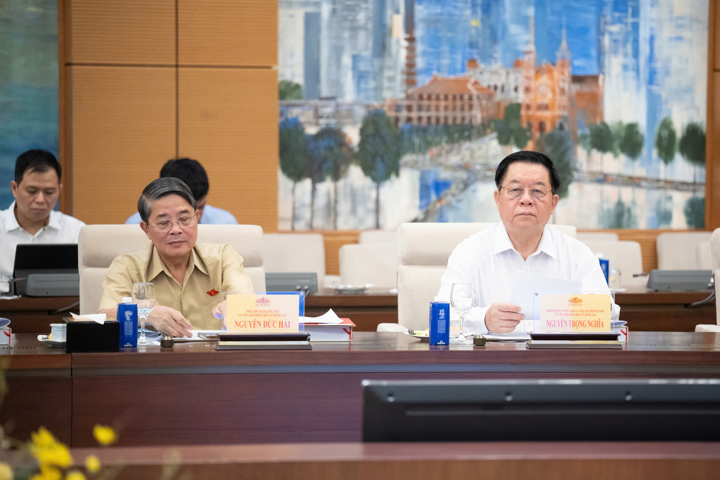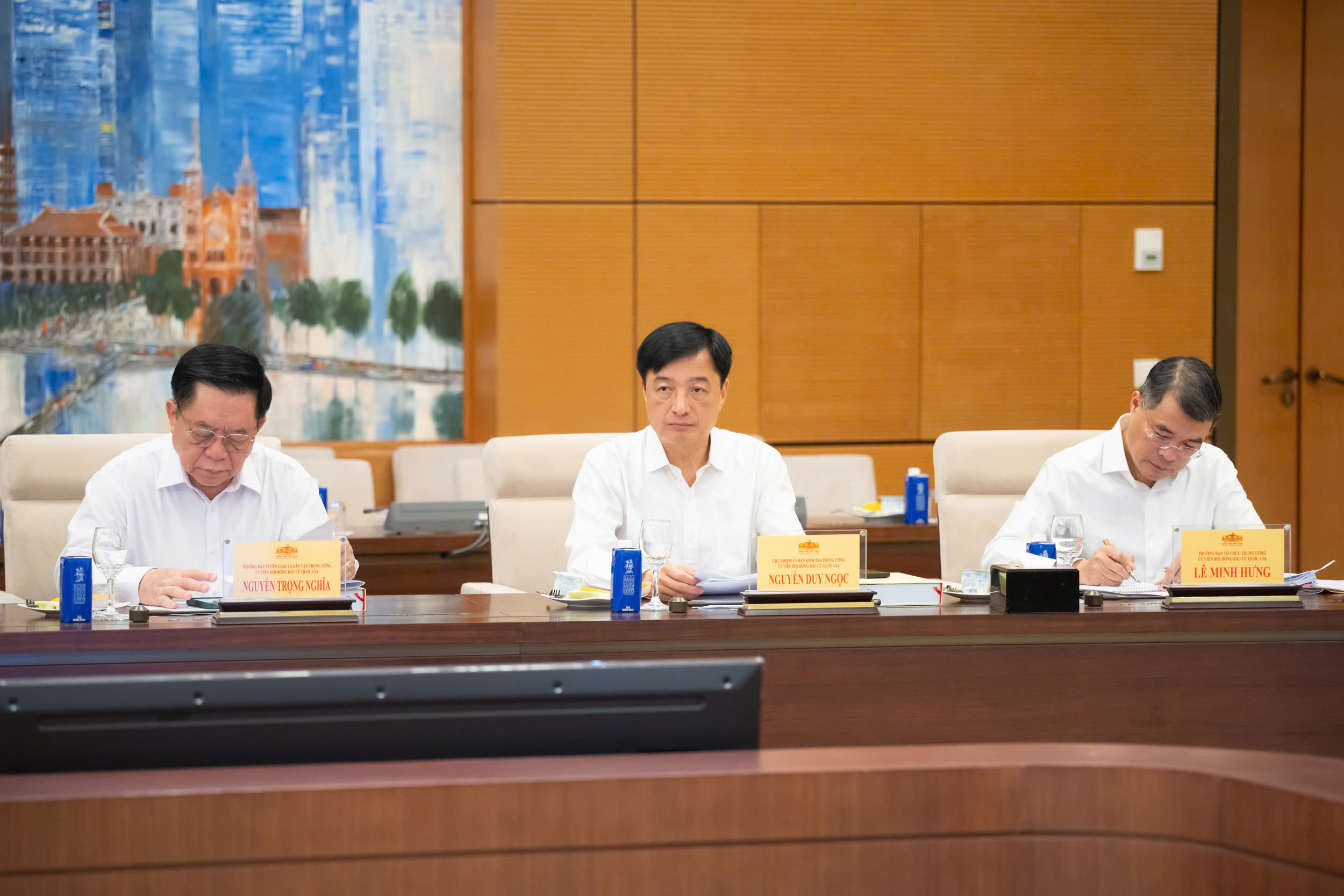 Cùng dự Hội nghị có: Ủy viên Bộ Chính trị, Phó Thủ tướng Thường trực Chính phủ Nguyễn Hoà Bình, Phó Chủ tịch Hội đồng Bầu cử quốc gia; Ủy viên Bộ Chính trị, Bí thư Trung ương Đảng, Chủ tịch Ủy ban Trung ương Mặt trận Tổ quốc Việt Nam Đỗ Văn Chiến, Phó Chủ tịch Hội đồng Bầu cử quốc gia; Uỷ viên Trung ương Đảng, Phó Chủ tịch nước Võ Thị Ánh Xuân, Phó Chủ tịch Hội đồng Bầu cử quốc gia; Uỷ viên Trung ương Đảng, Phó Chủ tịch Quốc hội Nguyễn Thị Thanh, Phó Chủ tịch Thường trực Hội đồng Bầu cử Quốc gia; cùng dự có các Ủy viên Hội đồng Bầu cử quốc gia, đại diện các cơ quan liên quan.