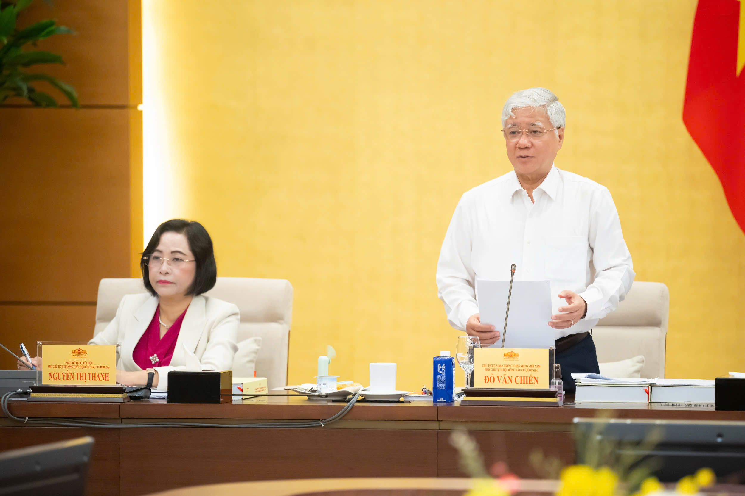 Chủ tịch Ủy ban Trung ương Mặt trận Tổ quốc Việt Nam Đỗ Văn Chiến, Phó Chủ tịch Hội đồng Bầu cử quốc gia cho ý kiến tại phiên họp