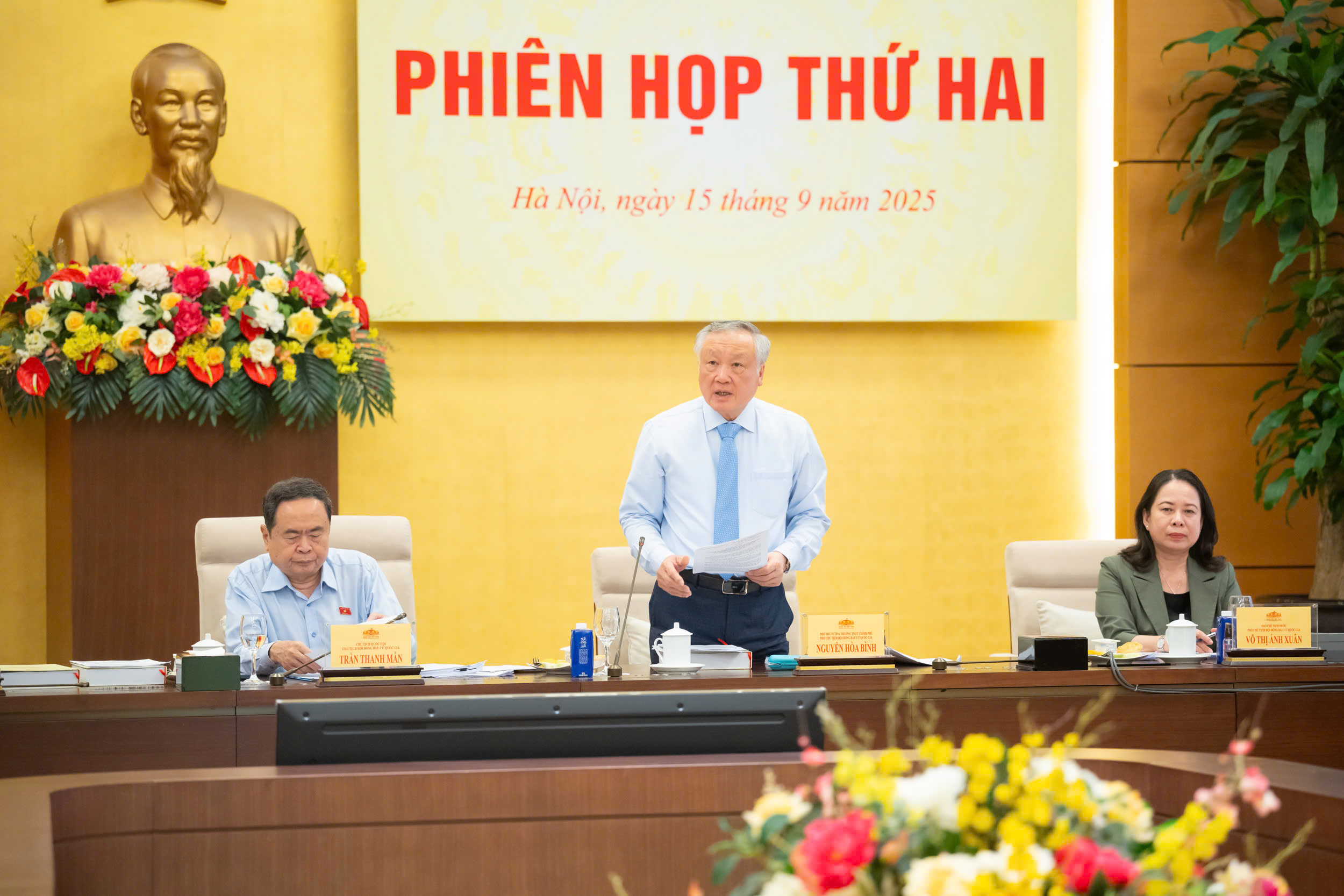 Báo cáo về tình hình triển khai công tác chuẩn bị bầu cử từ sau phiên họp thứ nhất đến nay, Tổng thư ký Quốc hội, Chủ nhiệm Văn phòng Quốc hội, Chánh văn phòng Hội đồng bầu cử Quốc gia Lê Quang Tùng cho biết, hiện đã triển khai các công tác liên quan tới ban hành các văn bản chỉ đạo và hướng dẫn bầu cử. Tính đến ngày 11/9/2025, Ủy ban Thường vụ Quốc hội, Hội đồng bầu cử quốc gia, Thủ tướng Chính phủ, Ban Tổ chức Trung ương, Ban Tuyên giáo và Dân vận Trung ương, Ủy ban Kiểm tra Trung ương, Bộ Nội vụ, Bộ Tài chính đã hoàn thành việc ban hành 15 văn bản hướng dẫn.