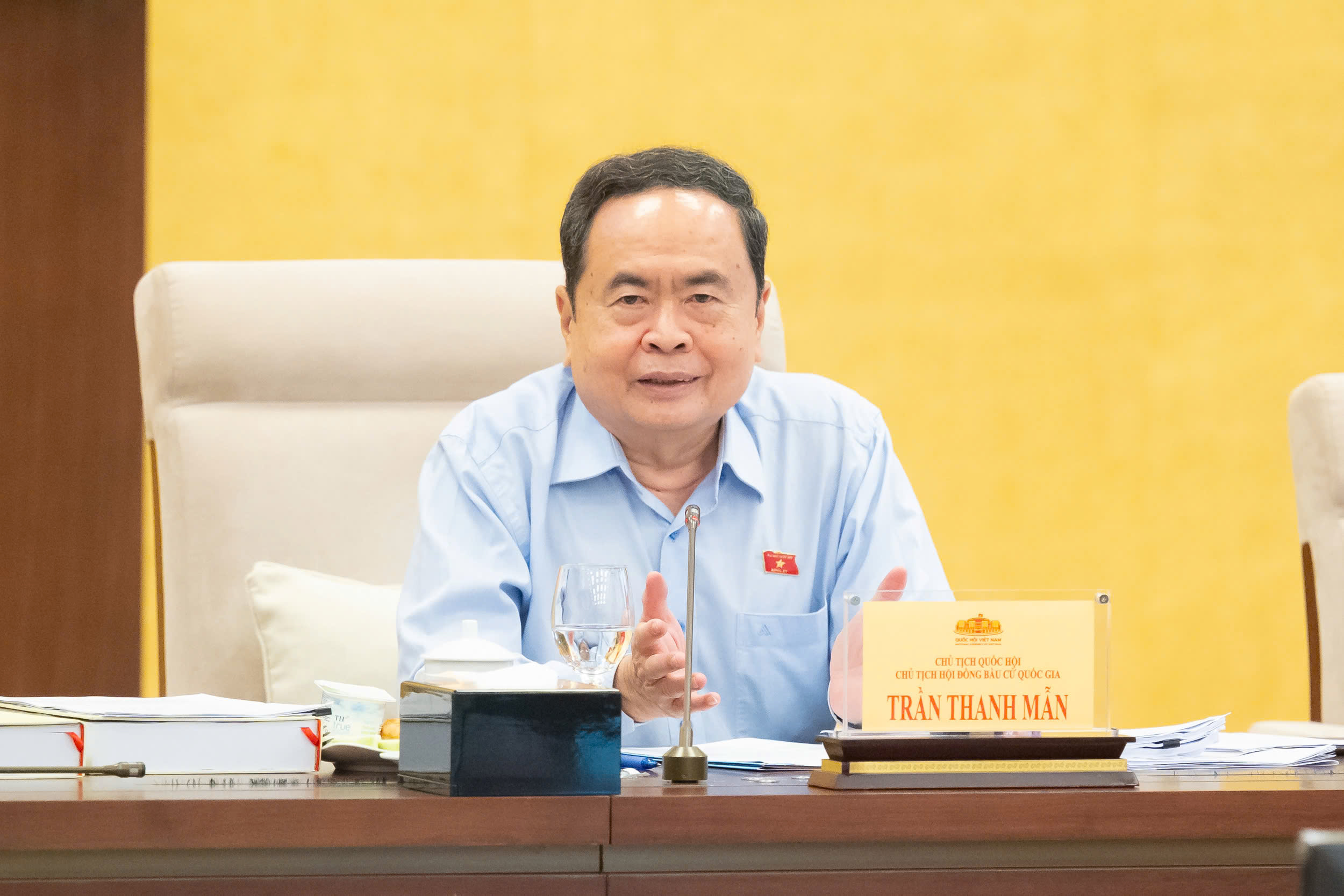 Chủ tịch Quốc hội Trần Thanh Mẫn, Chủ tịch Hội đồng Bầu cử quốc gia phát biểu tại phiên họp