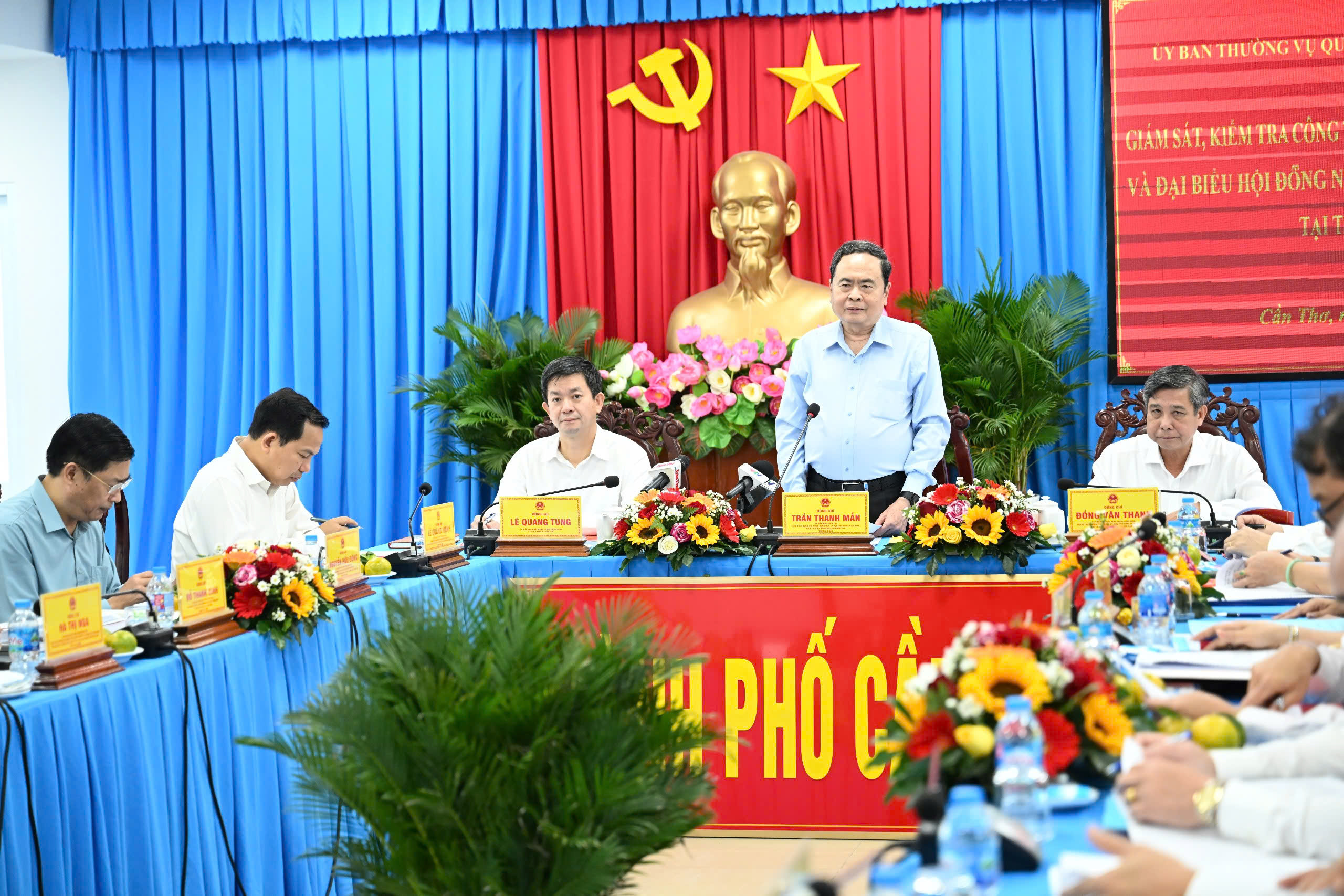 Chủ tịch Quốc hội Trần Thanh Mẫn, Chủ tịch Hội đồng Bầu cử quốc gia phát biểu chỉ đạo tại cuộc làm việc với Ủy ban bầu cử thành phố Cần Thơ