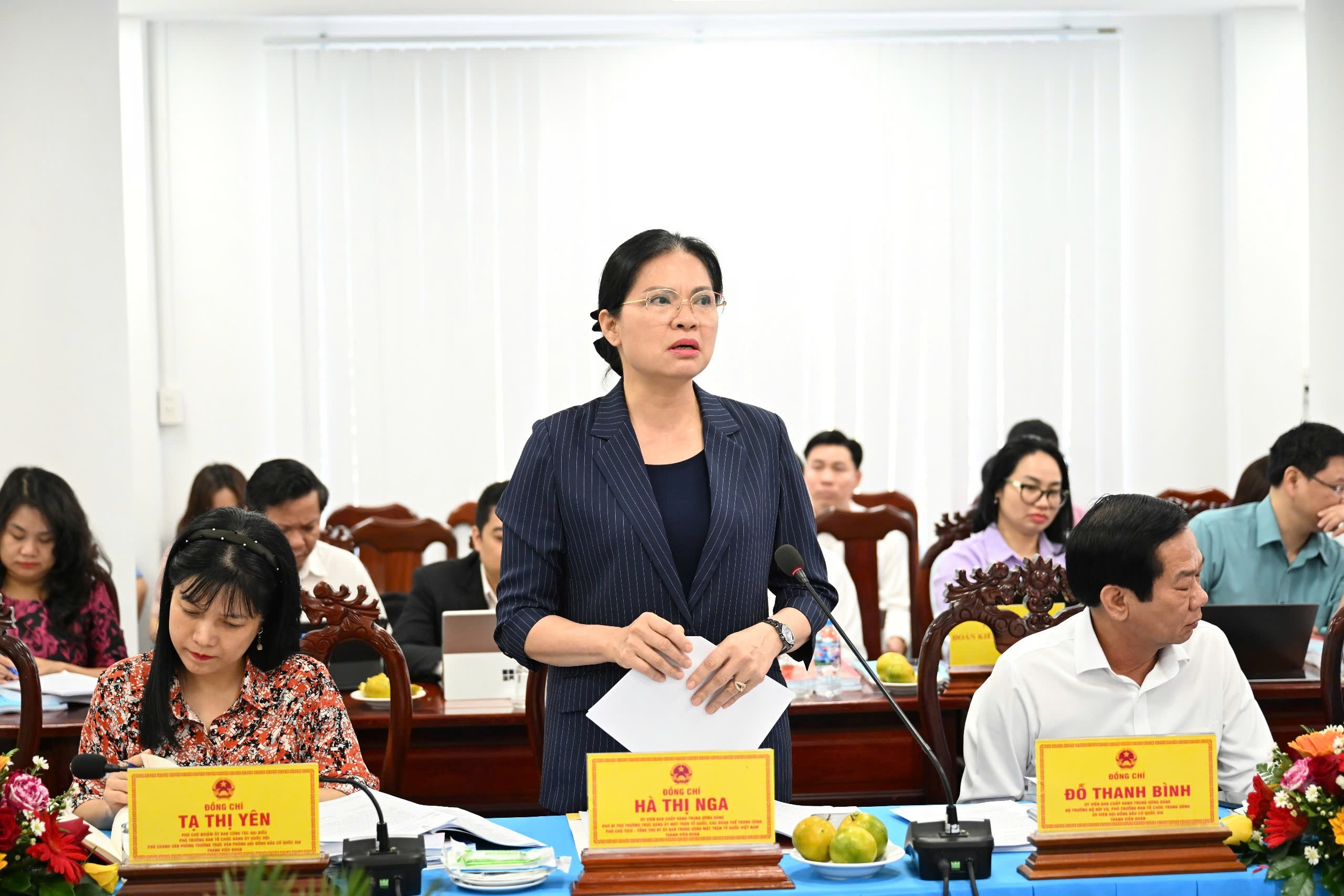 Phó Chủ tịch - Tổng Thư ký Ủy ban Trung ương MTTQ Việt Nam Hà Thị Nga phát biểu tại cuộc làm việc