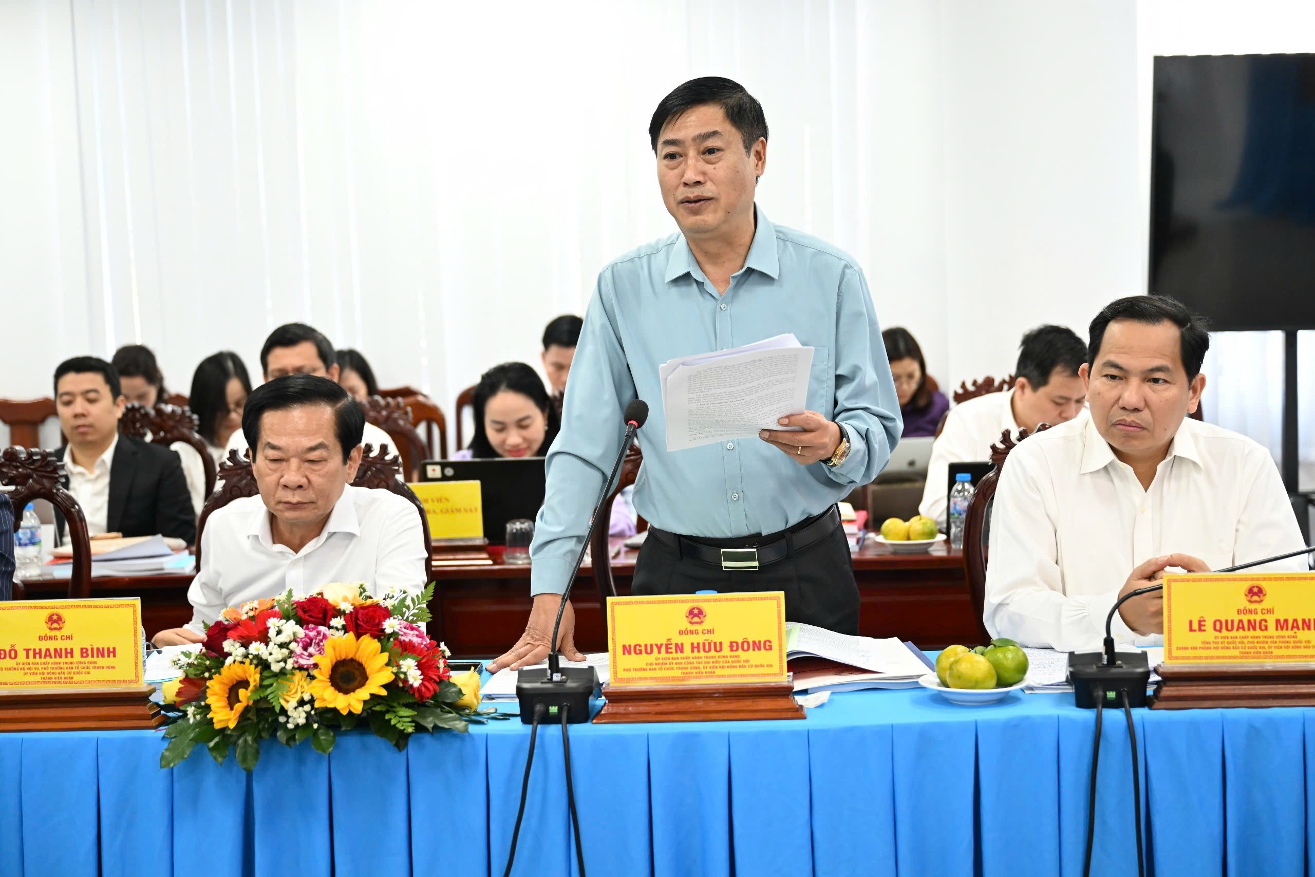 Chủ nhiệm Ủy ban Công tác đại biểu Nguyễn Hữu Đông - Ủy viên Hội đồng Bầu cử quốc gia phát biểu tại cuộc làm việc