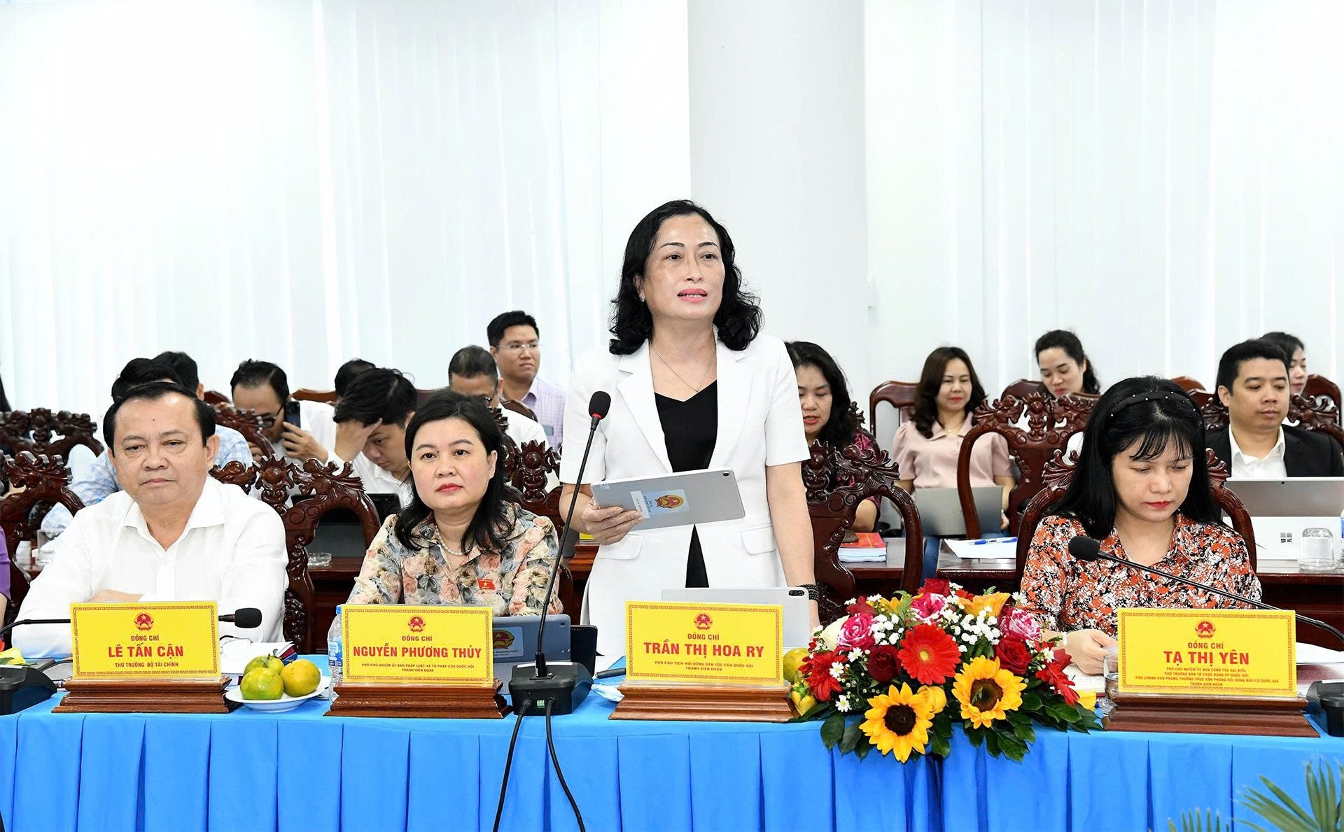 Phó Chủ tịch Hội đồng Dân tộc Trần Thị Hoa Ry phát biểu