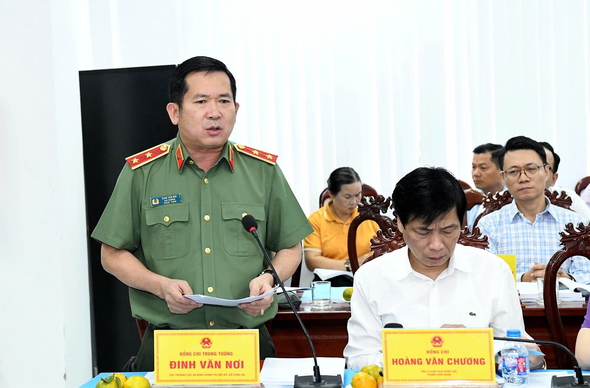 Cục trưởng Cục An ninh chính trị nội bộ - Bộ Công an, Trung tướng Đinh Văn Nơi phát biểu
