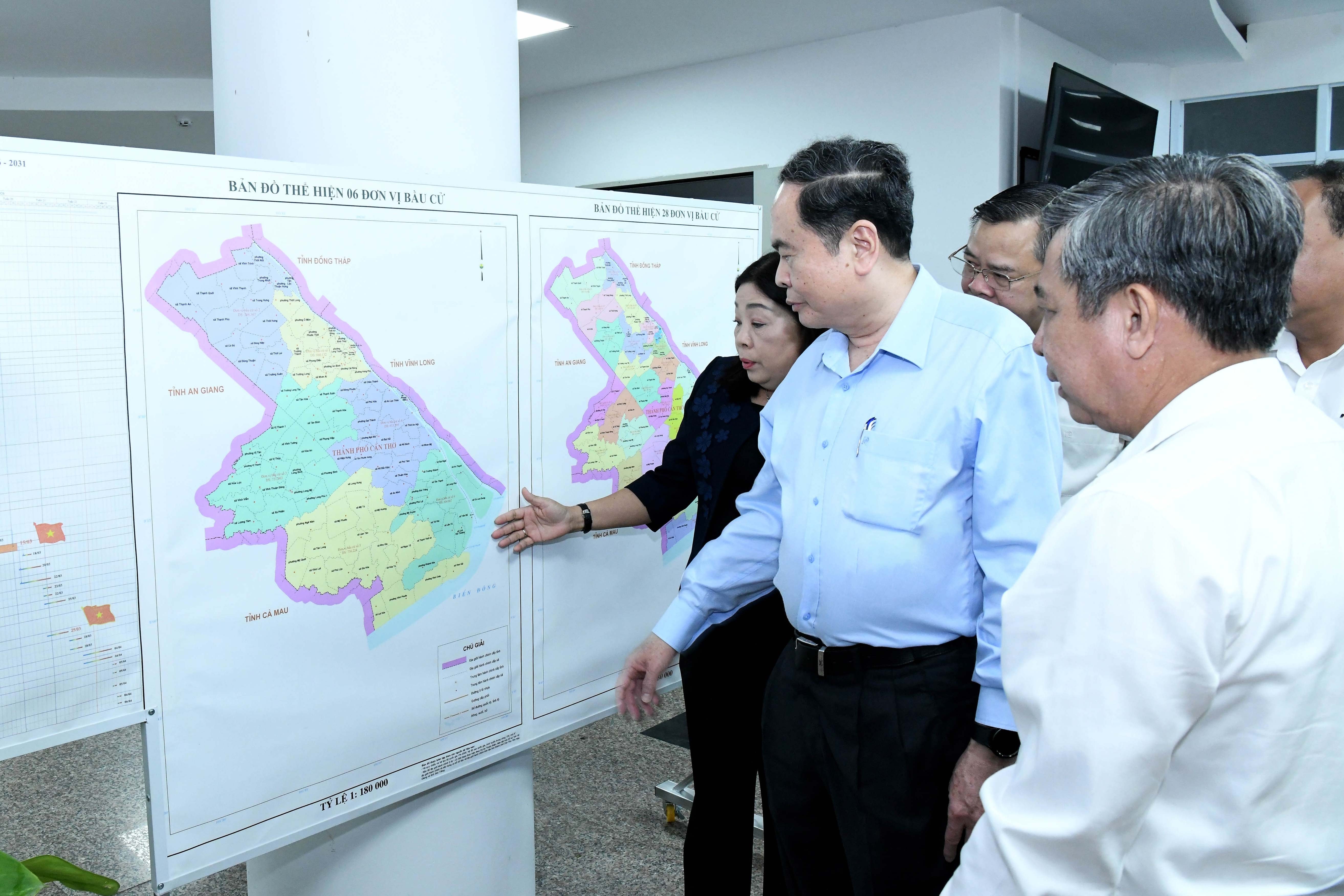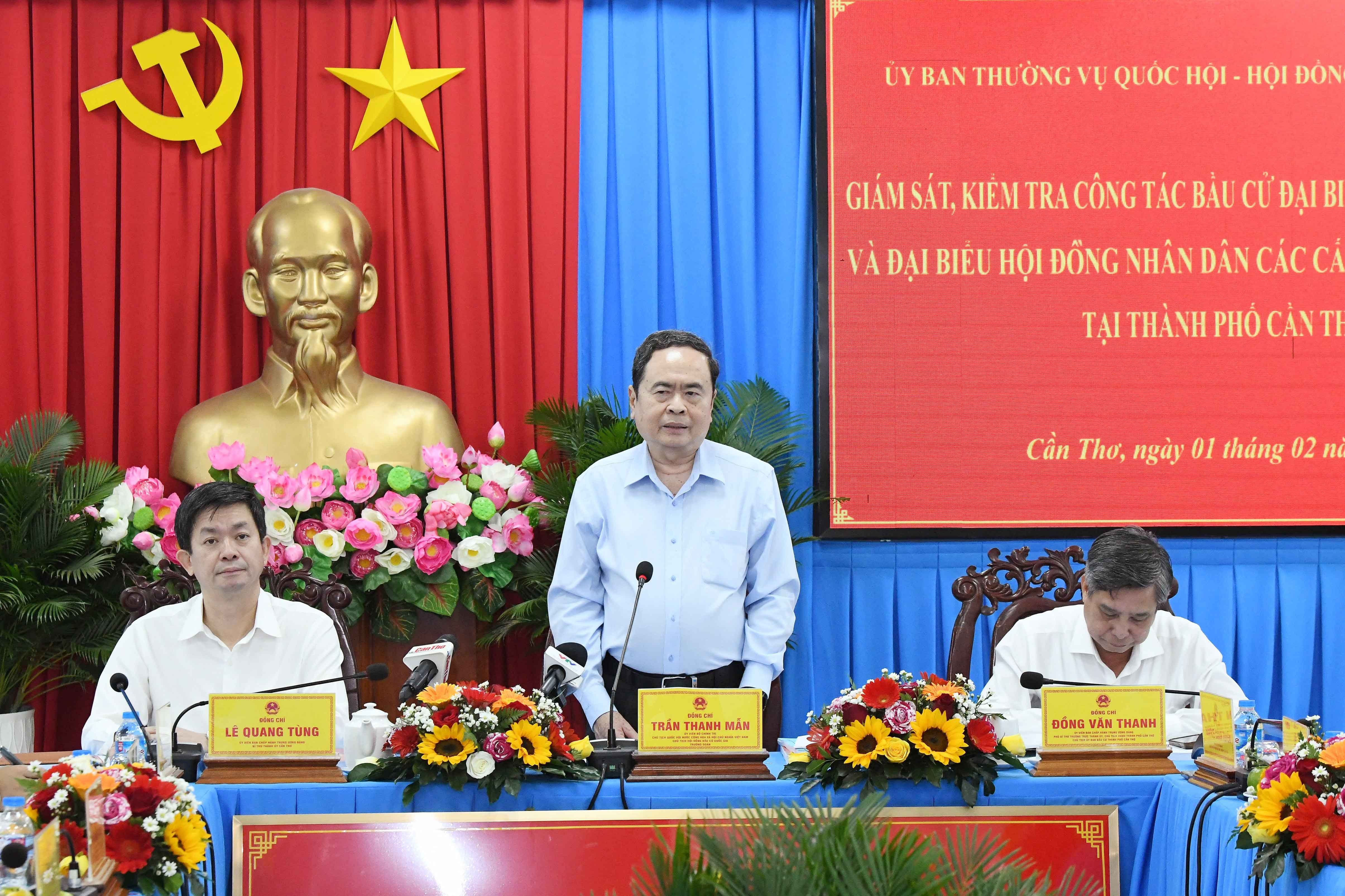 Chủ tịch Quốc hội, Chủ tịch Hội đồng Bầu cử quốc gia Trần Thanh Mẫn và Đoàn công tác làm việc với Ủy ban Bầu cử thành phố Cần Thơ