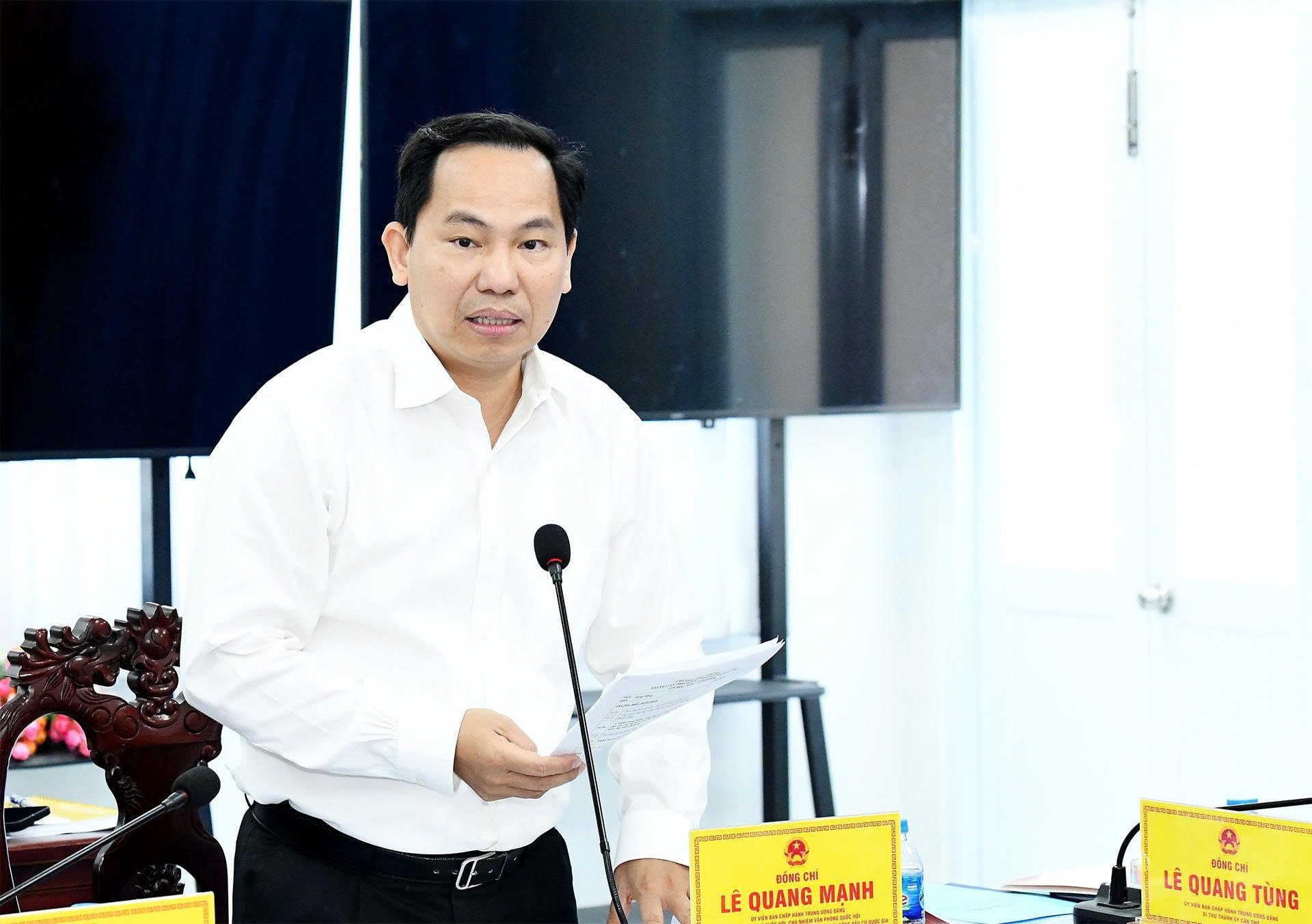 Cùng dự cuộc làm việc có các Ủy viên Trung ương Đảng: Tổng Thư ký Quốc hội, Chủ nhiệm Văn phòng Quốc hội Lê Quang Mạnh; Chủ nhiệm Ủy ban Công tác đại biểu Nguyễn Hữu Đông; Bộ trưởng Bộ Nội vụ Đỗ Thanh Bình; Phó Chủ tịch - Tổng Thư ký Ủy ban Trung ương MTTQ Việt Nam Hà Thị Nga; Bí thư Thành ủy Cần Thơ Lê Quang Tùng và đại diện Thường trực một số cơ quan của Quốc hội, lãnh đạo thành phố Cần Thơ.