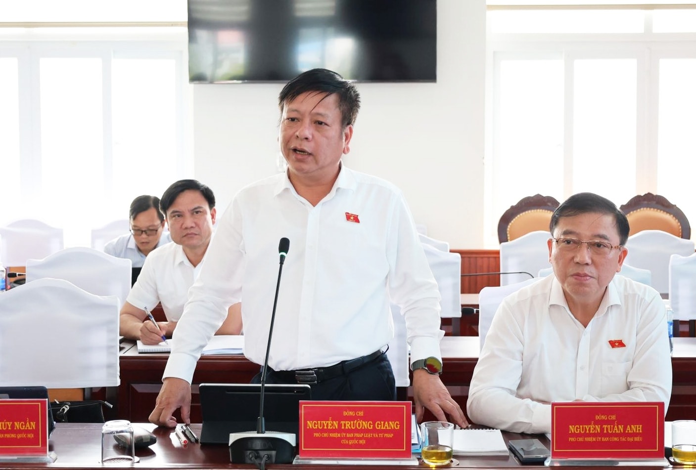 Cùng dự có: Phó Chủ nhiệm Ủy ban Công tác đại biểu Nguyễn Tuấn Anh; Phó Chủ nhiệm Ủy ban Pháp luật và Tư pháp Nguyễn Trường Giang; Phó Chủ nhiệm Thường trực Văn phòng Quốc hội Nguyễn Thị Thúy Ngần; Thứ trưởng Bộ Văn hóa, Thể thao và Du lịch Phan Tâm...