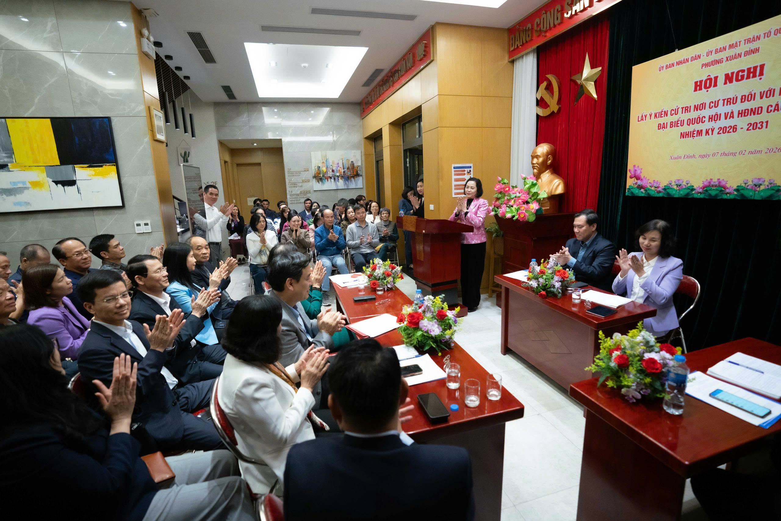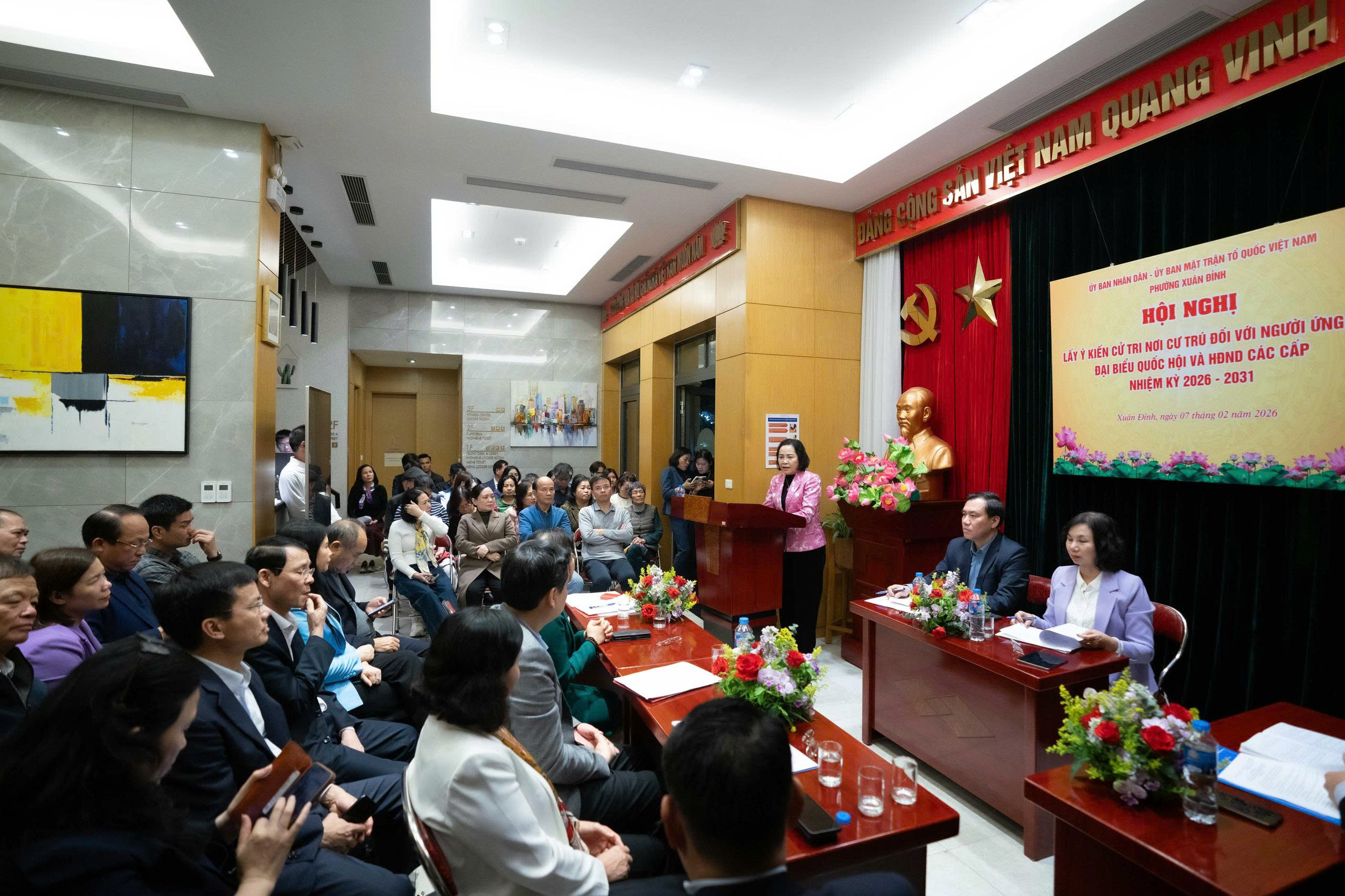 Tối 7/2, tại Hà Nội, UBND và Ủy ban Mặt trận Tổ quốc Việt Nam phường Xuân Đỉnh tổ chức Hội nghị lấy ý kiến cử tri nơi cư trú đối với người ứng cử đại biểu Quốc hội Khóa XVI và đại biểu HĐND các cấp thành phố Hà Nội nhiệm kỳ 2026 - 2031.