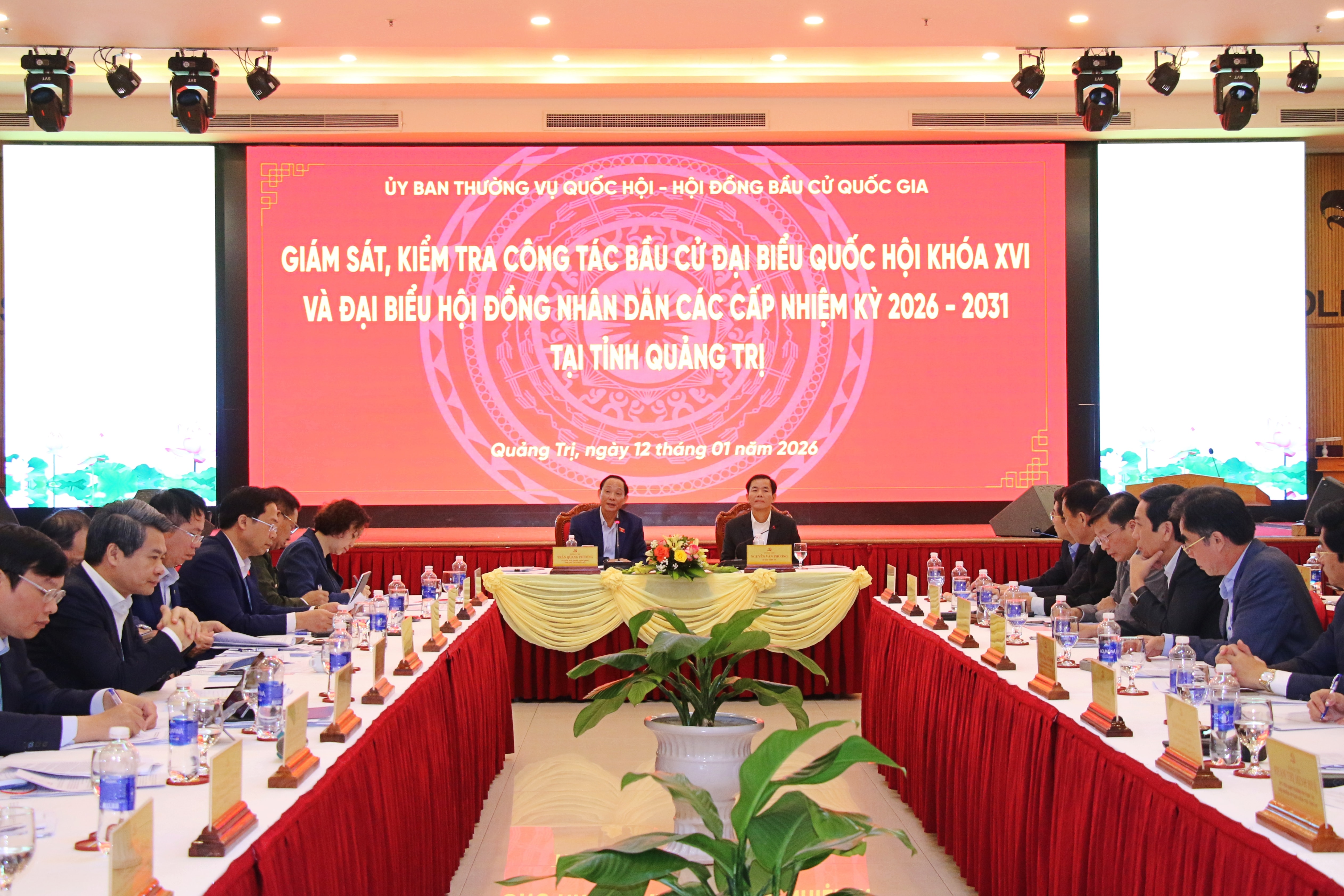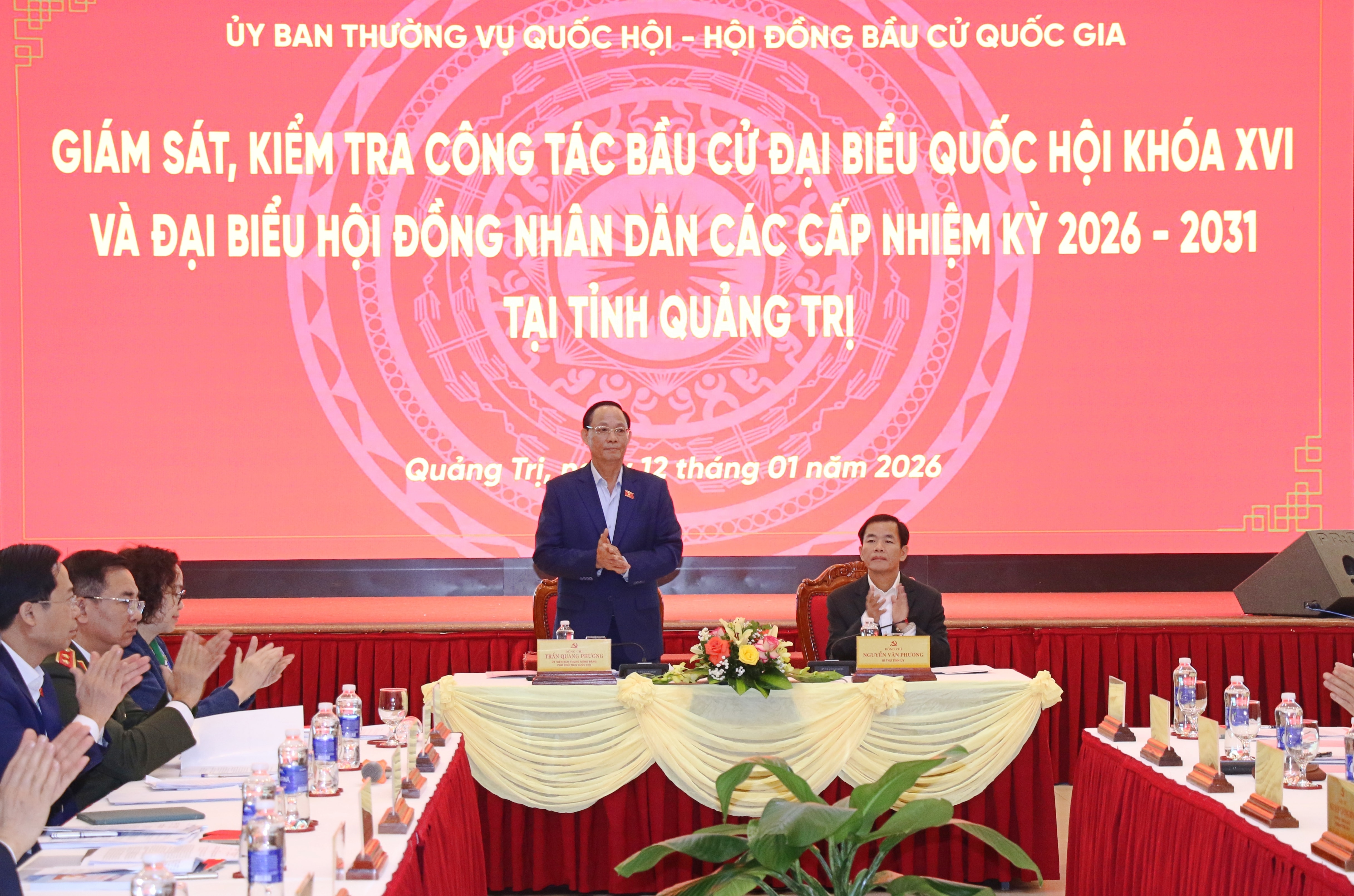 Sáng 12/1, tại Quảng Trị, Đoàn kiểm tra, giám sát về công tác bầu cử đại biểu Quốc hội khóa XVI và đại biểu HĐND các cấp nhiệm kỳ 2026 - 2031 của Ủy ban Thường vụ Quốc hội và Hội đồng Bầu cử quốc gia do Ủy viên Trung ương Đảng, Phó Chủ tịch Quốc hội, Thượng tướng Trần Quang Phương - Ủy viên Hội đồng Bầu cử quốc gia, Trưởng Tiểu ban Bảo đảm an ninh, trật tự, an toàn xã hội trực thuộc Hội đồng Bầu cử quốc gia làm Trưởng đoàn, đã làm việc với Ủy ban bầu cử tỉnh Quảng Trị.