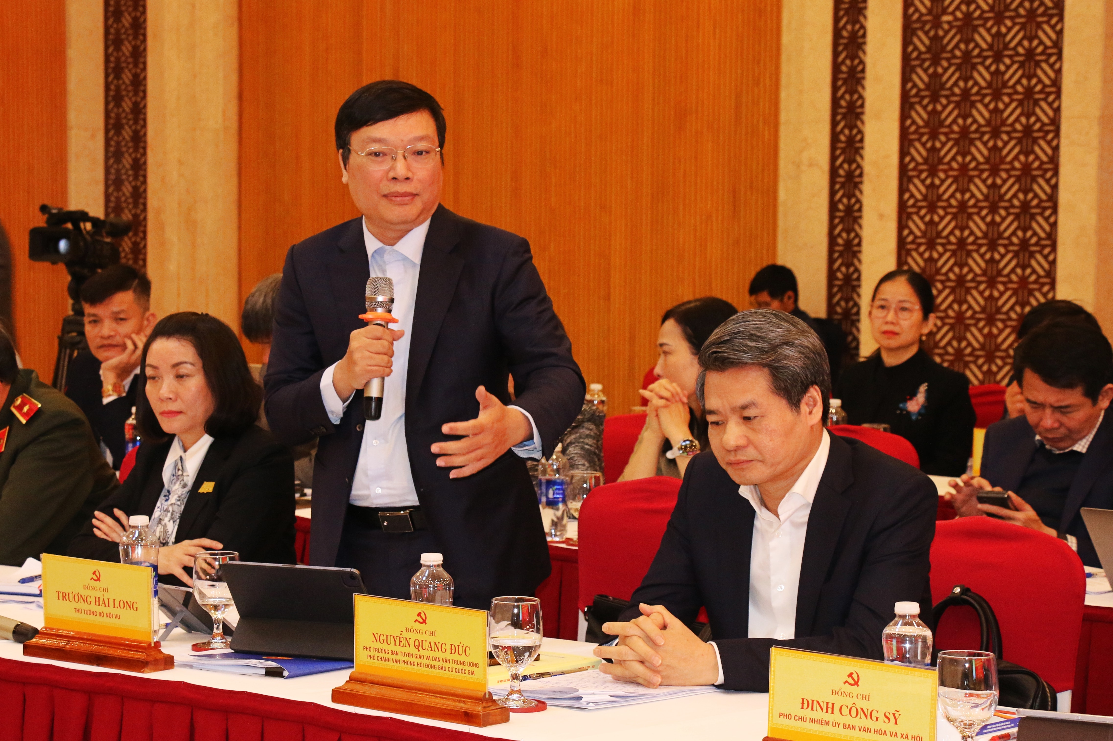 Phó Trưởng ban Tuyên giáo và Dân vận Trung ương, Phó Chánh Văn phòng Hội đồng Bầu cử quốc gia Nguyễn Quang Đức phát biểu