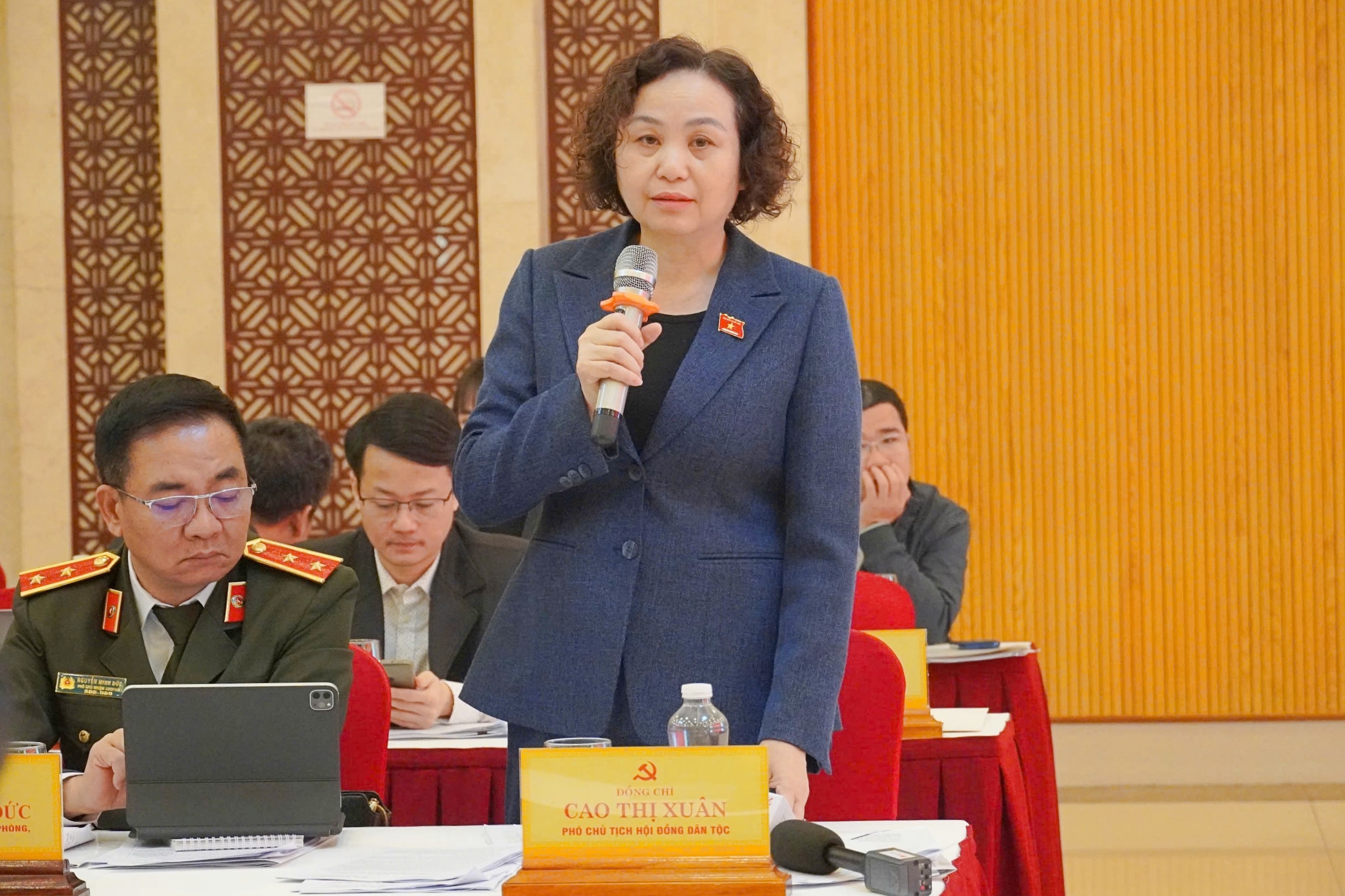 Phó Chủ tịch Hội đồng Dân tộc Cao Thị Xuân phát biểu