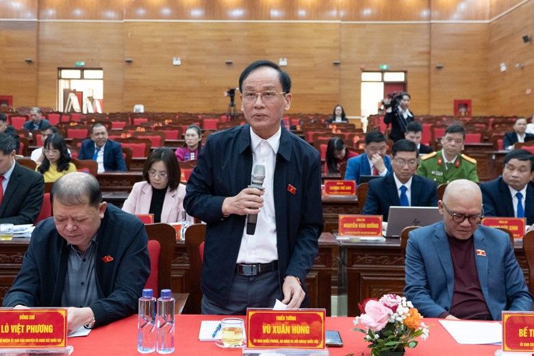 Thiếu tướng Vũ Xuân Hùng, ủy viên là đại biểu Quốc hội hoạt động chuyên trách tại Ủy ban Quốc phòng, An ninh và Đối ngoại phát biểu