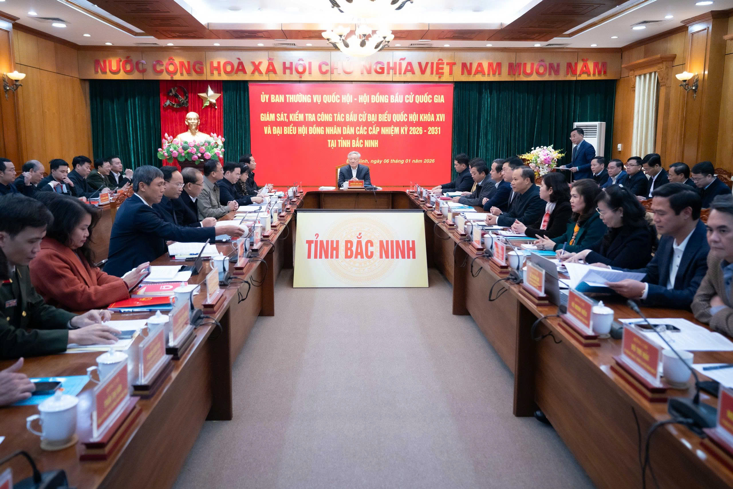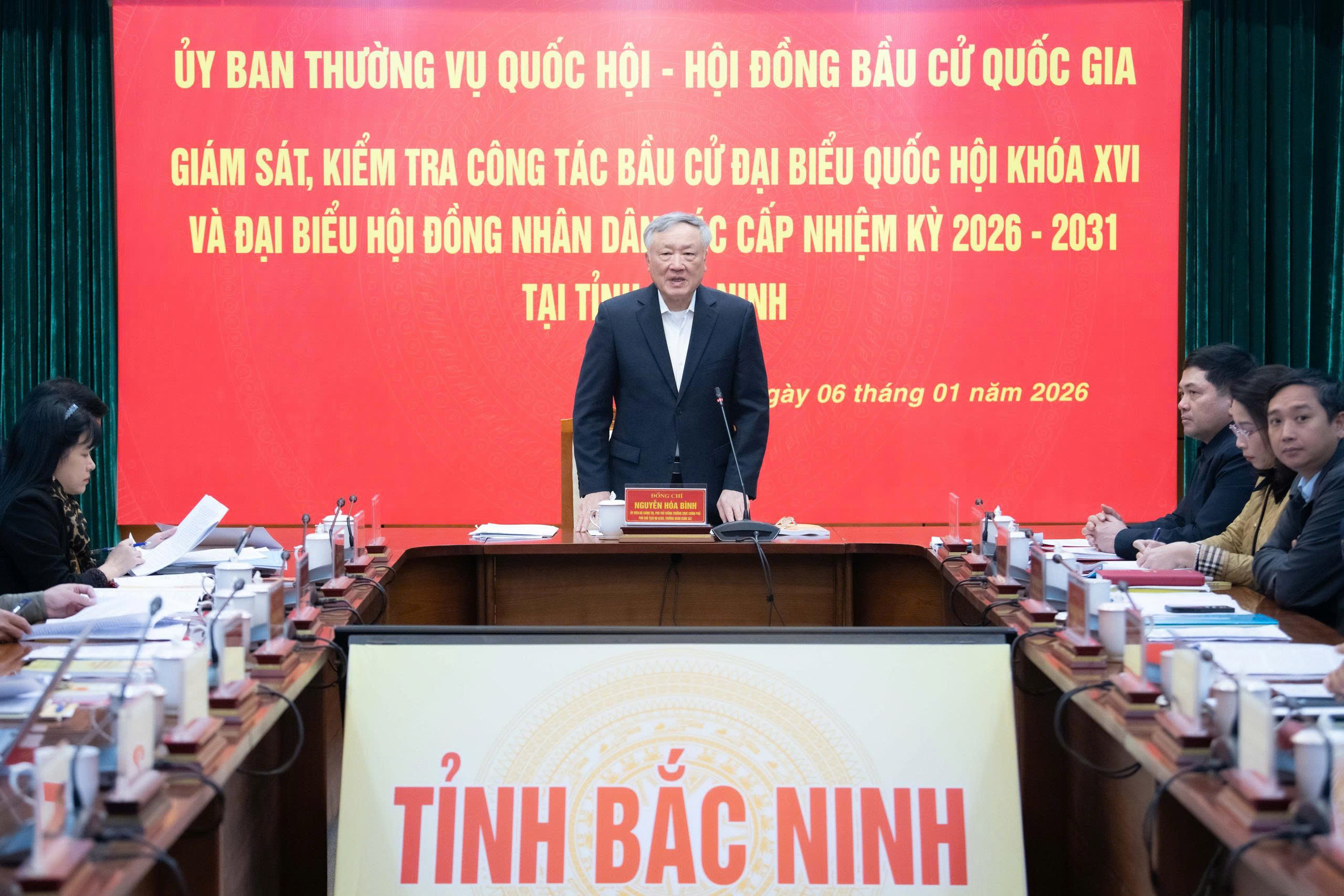 Chiều 6/1, Đoàn giám sát, kiểm tra của Ủy ban Thường vụ Quốc hội, Hội đồng bầu cử quốc gia do Ủy viên Bộ Chính trị, Phó Thủ tướng Thường trực Chính phủ, Phó Chủ tịch Hội đồng bầu cử quốc gia Nguyễn Hòa Bình làm Trưởng đoàn đã làm việc với Ủy ban bầu cử tỉnh Bắc Ninh.