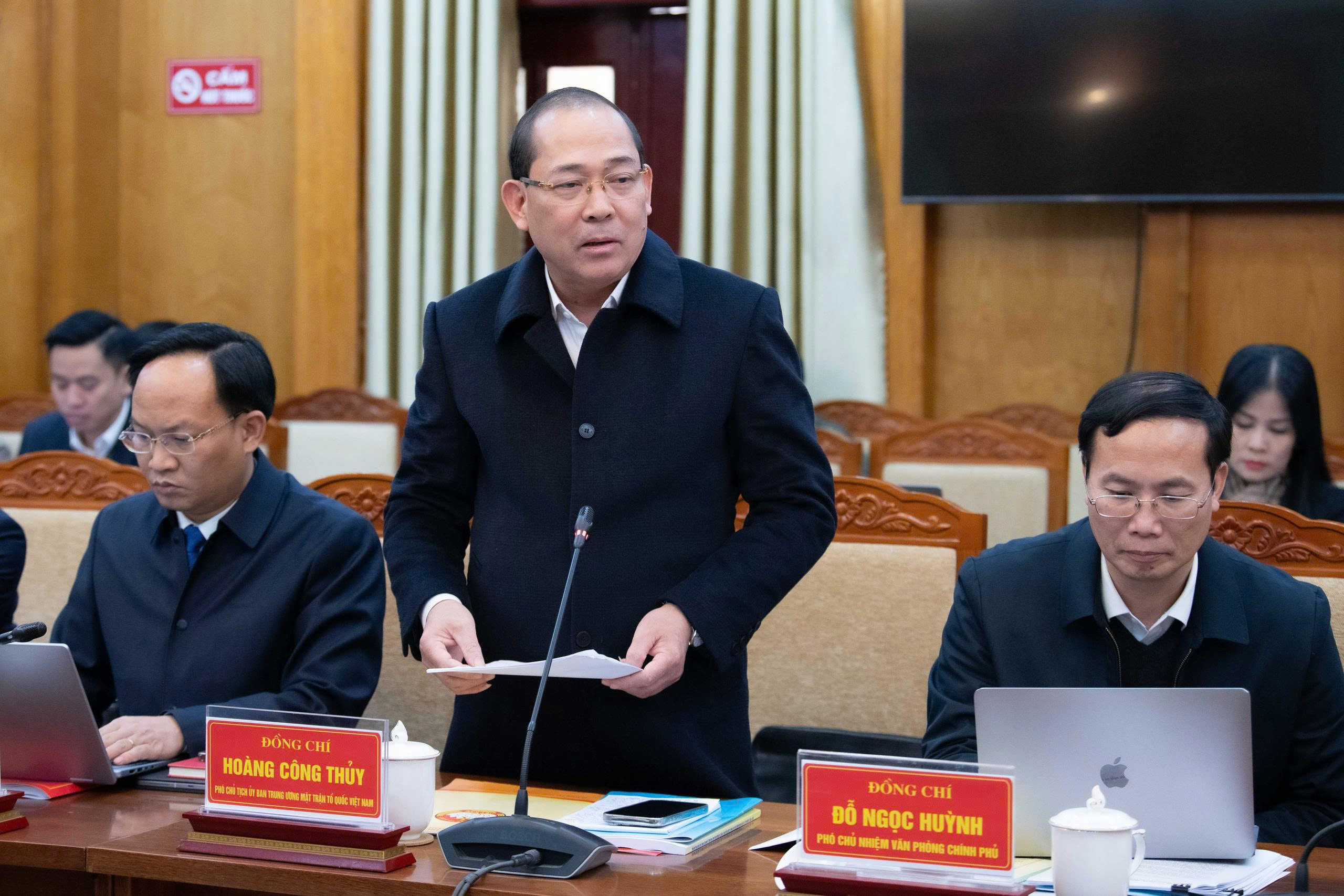 Phó Chủ tịch Ủy ban Trung ương Mặt trận Tổ quốc Việt Nam Hoàng Công Thủy phát biểu tại buổi giám sát