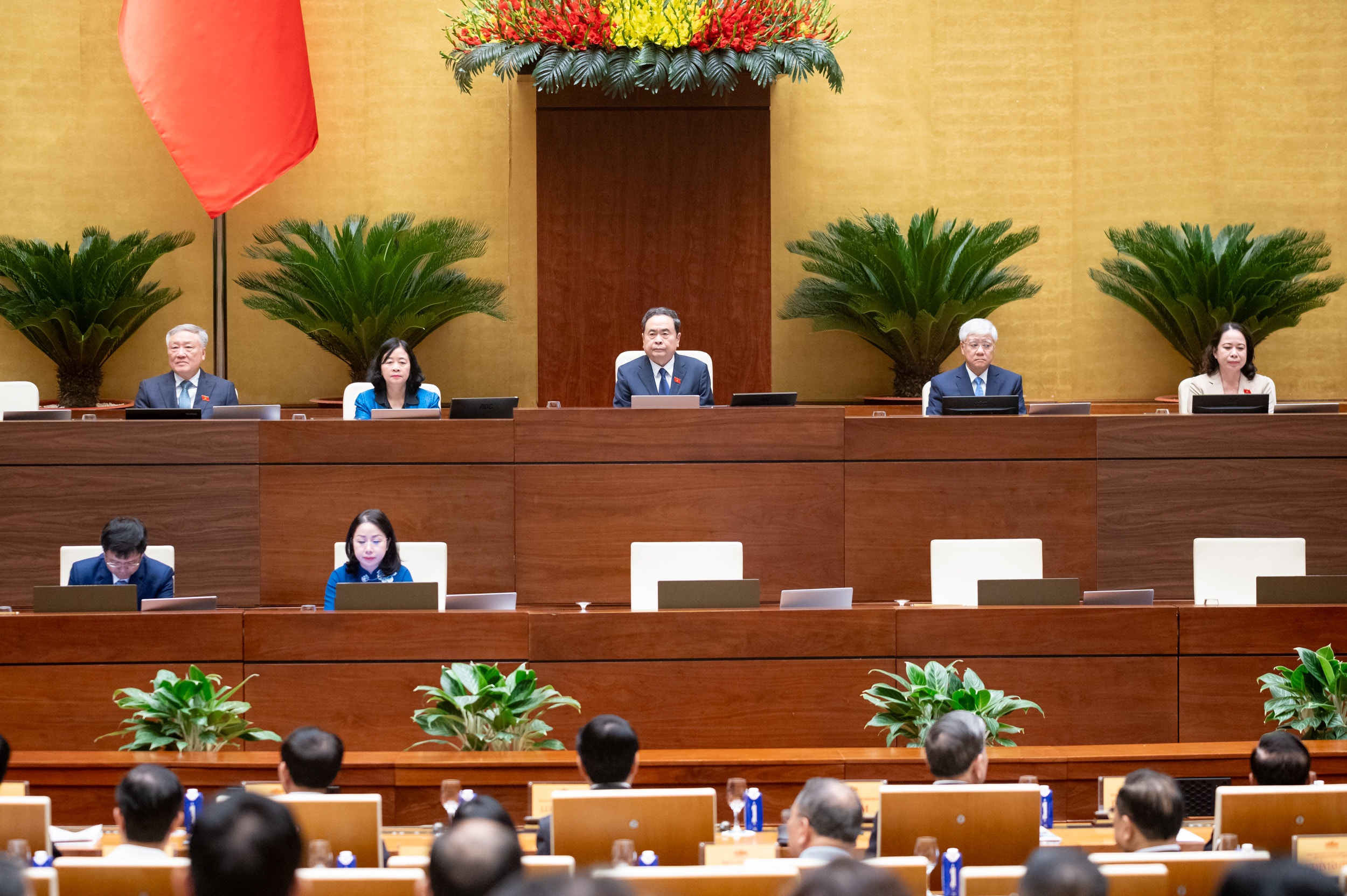 Tham dự tại điểm cầu chính, Hội trường Diên Hồng, Nhà Quốc hội còn có: lãnh đạo Đảng, Nhà nước, Quốc hội, Ủy ban Trung ương Mặt trận Tổ quốc Việt Nam; các Phó Chủ tịch Quốc hội và các Ủy viên Ủy ban Thường vụ Quốc hội; các Phó Thủ tướng Chính phủ; đại diện lãnh đạo các ban Đảng Trung ương, Tòa án nhân dân tối cao, Viện kiểm sát nhân dân tối cao; đại diện Văn phòng Chủ tịch nước, Văn phòng Chính phủ, Bộ Nội vụ, Bộ Tư pháp, Bộ Tài chính, Bộ Văn hóa, Thể thao và Du lịch, Bộ Khoa học và Công nghệ, Bộ Quốc phòng, Bộ Công an, Thanh tra Chính phủ, Thường trực Hội đồng Dân tộc, các Ủy ban của Quốc hội, Văn phòng Quốc hội; thành viên các Tiểu ban của Hội đồng Bầu cử quốc gia, Văn phòng Hội đồng Bầu cử quốc gia; các đồng chí lãnh đạo tỉnh ủy, thành ủy, Hội đồng nhân dân, Ủy ban nhân dân, Ủy ban mặt trận Tổ Quốc, Đoàn đại biểu Quốc hội các tỉnh, thành phố và chuyên viên trực tiếp tham mưu phục vụ bầu cử.