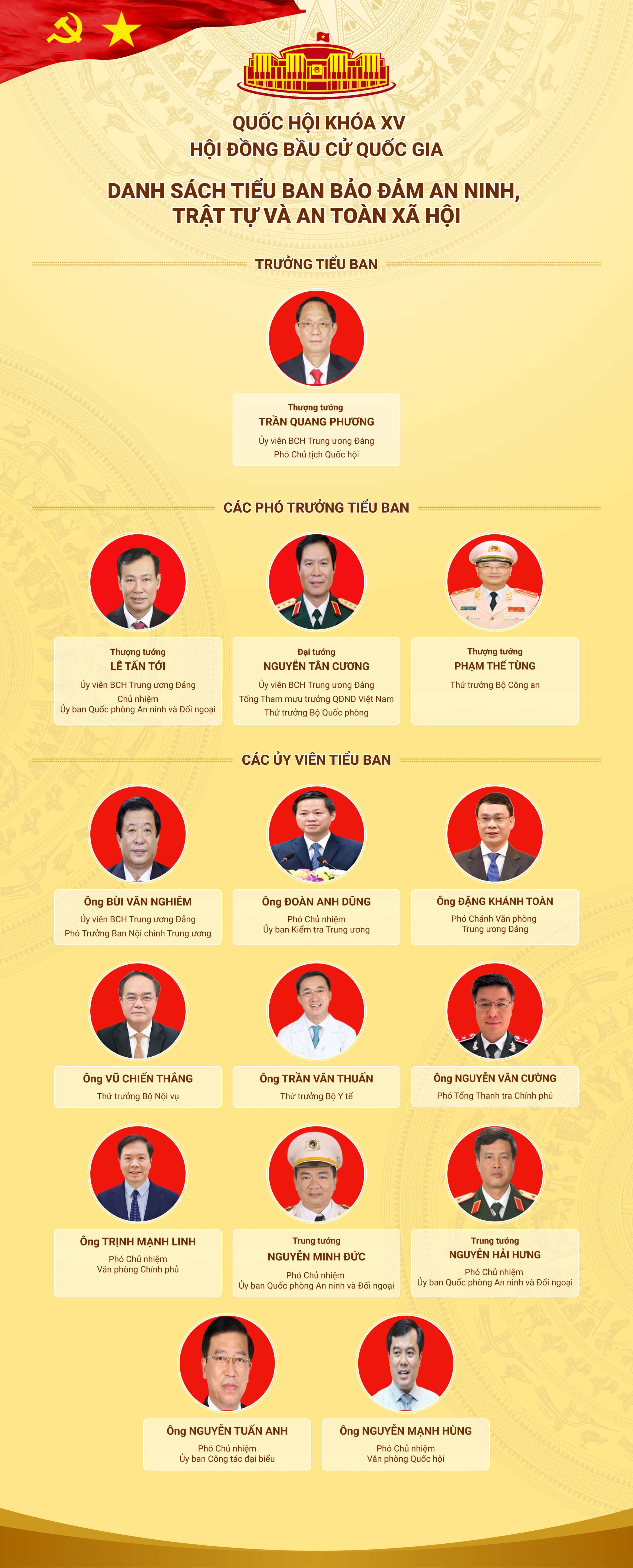Danh sách Tiểu ban Bảo đảm an ninh, Trật tự và An toàn xã hội