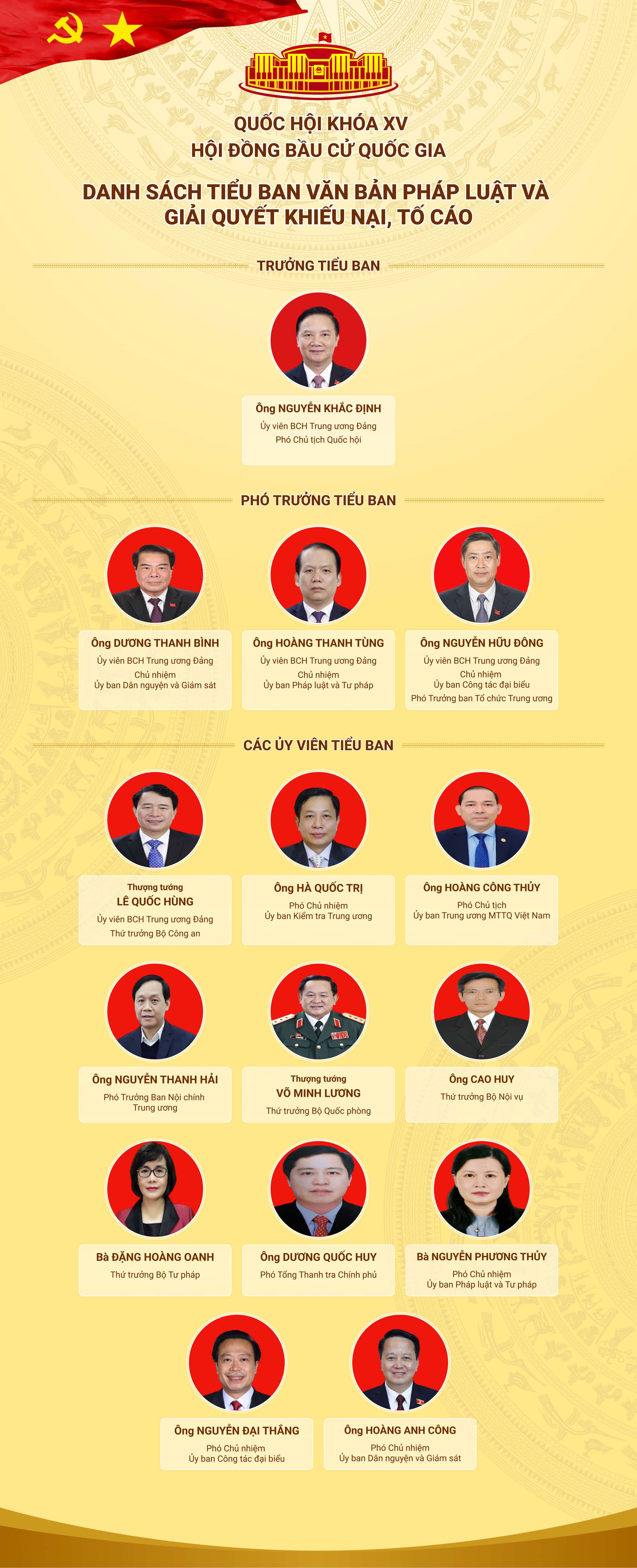 Danh sách Tiểu ban văn bản pháp luật và giải quyết khiếu nại, tố cáo